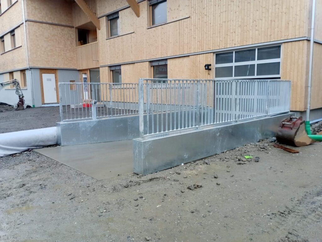 Staketengeländer auf Betoneinfassung Feuerverzinkt in Mehrparteienhaus