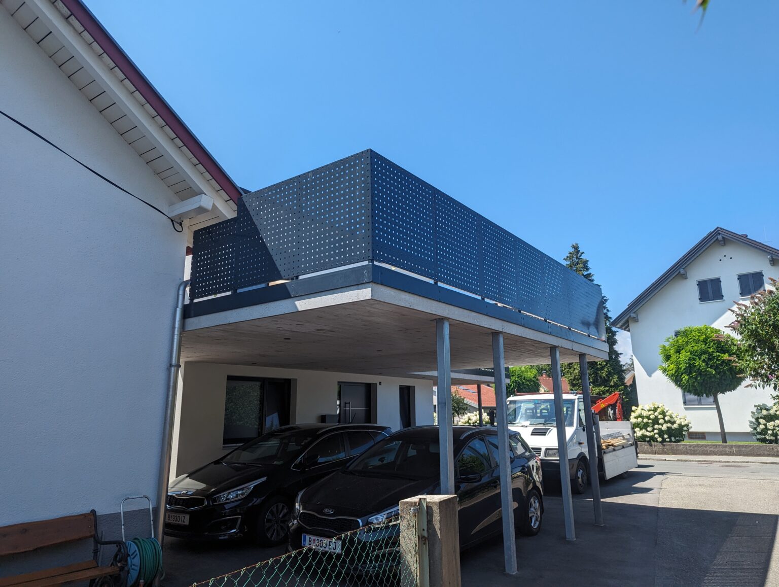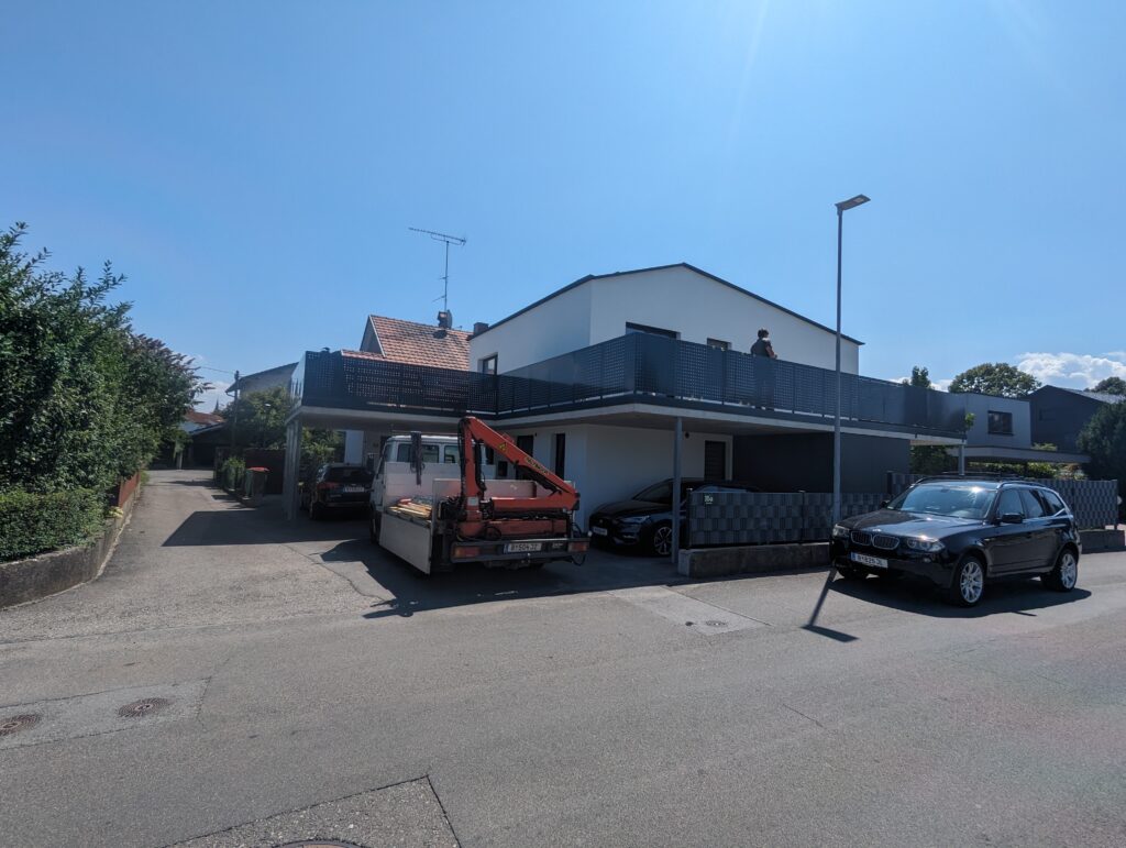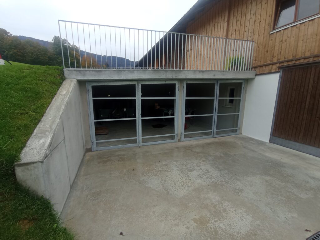 Staketengeländer beidseits auf Hofeinfahrt und Garegentore im UG